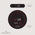 - Each label is sold separately and includes a rear lens cap indicator and a front cap indicator.
