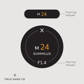 Chaque indicateur, vendu séparément, comprend un autocollant pour le capuchon avant et un autre pour le capuchon arrière des objectifs Leica M. On y retrouve la distance focale, l’ouverture, le diamètre du filtre et les désignations de l’objectif. Fabriqués à Montréal, au Canada, à partir de vinyle mat nord-américain, durable et résistant aux UV et aux éraflures, ces indicateurs adhèrent solidement grâce à un adhésif conçu pour l’extérieur, assurant performance et finition professionnelle.