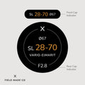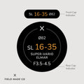 Chaque indicateur, vendu séparément, comprend un autocollant pour le capuchon avant et un autre pour le capuchon arrière des objectifs Leica SL. On y retrouve la distance focale, l’ouverture, le diamètre du filtre et les désignations de l’objectif. Fabriqués à Montréal, au Canada, à partir de vinyle mat nord-américain, durable et résistant aux UV et aux éraflures, ces indicateurs adhèrent solidement grâce à un adhésif conçu pour l’extérieur, assurant performance et finition professionnelle.